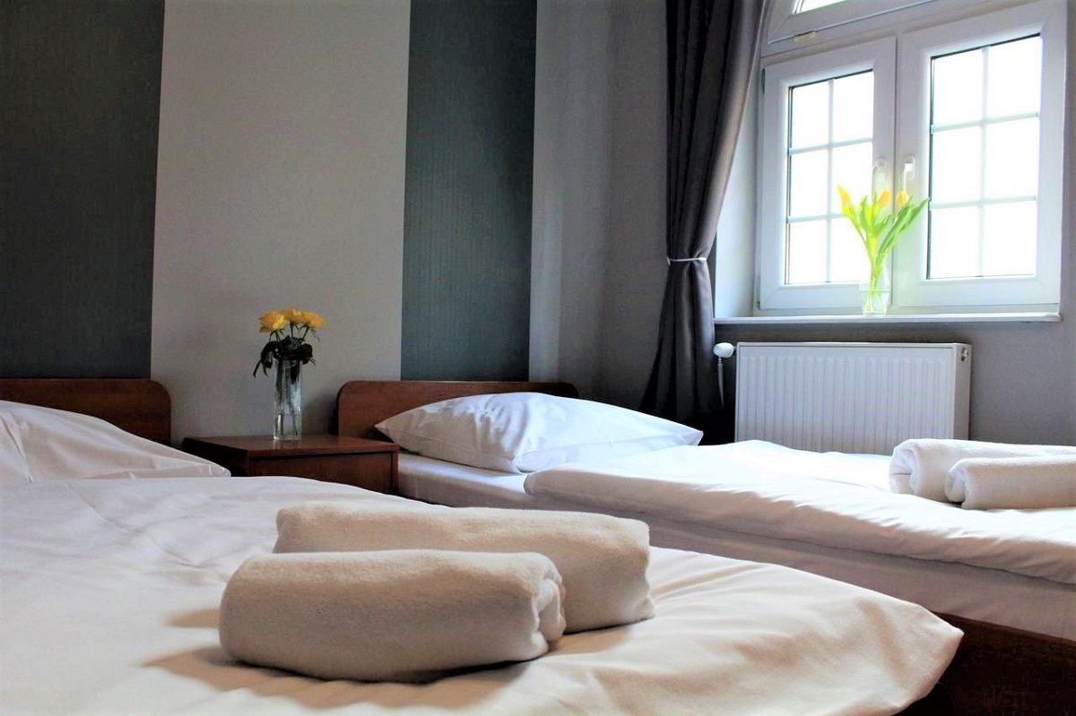 Oferuje komfortowe pokoje, z których każdy wyposażony został w telewizor LCD 22″ z 24 kanałami telewizji naziemnej, stałe łącze internetowe oraz łazienkę z pełnym węzłem sanitarnym.