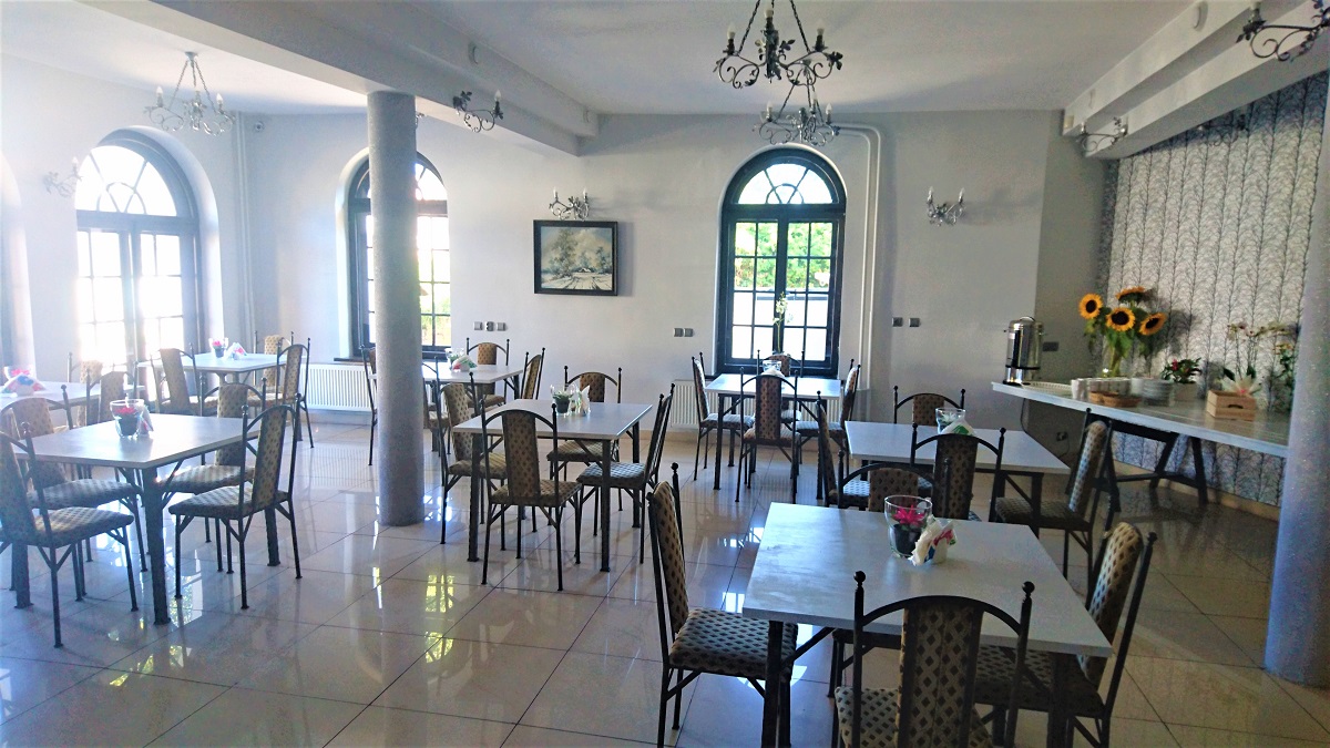 Posiłki podawane są w restauracji, która serwuje dania tradycyjnej kuchni polskiej, kuszące oko i zadziwiające smakiem.