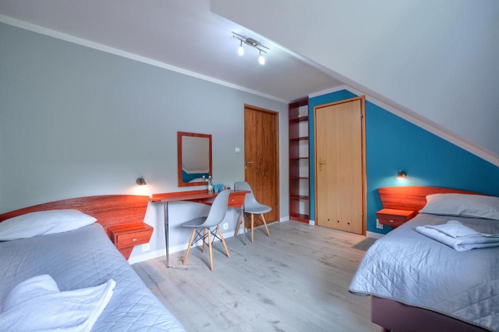 Na wyposażeniu pensjonatu jest również lodówka i czajniki z których goście mogą korzystać w każdej chwili, a także żelazko, deska do prasowania,suszarka do włosów.