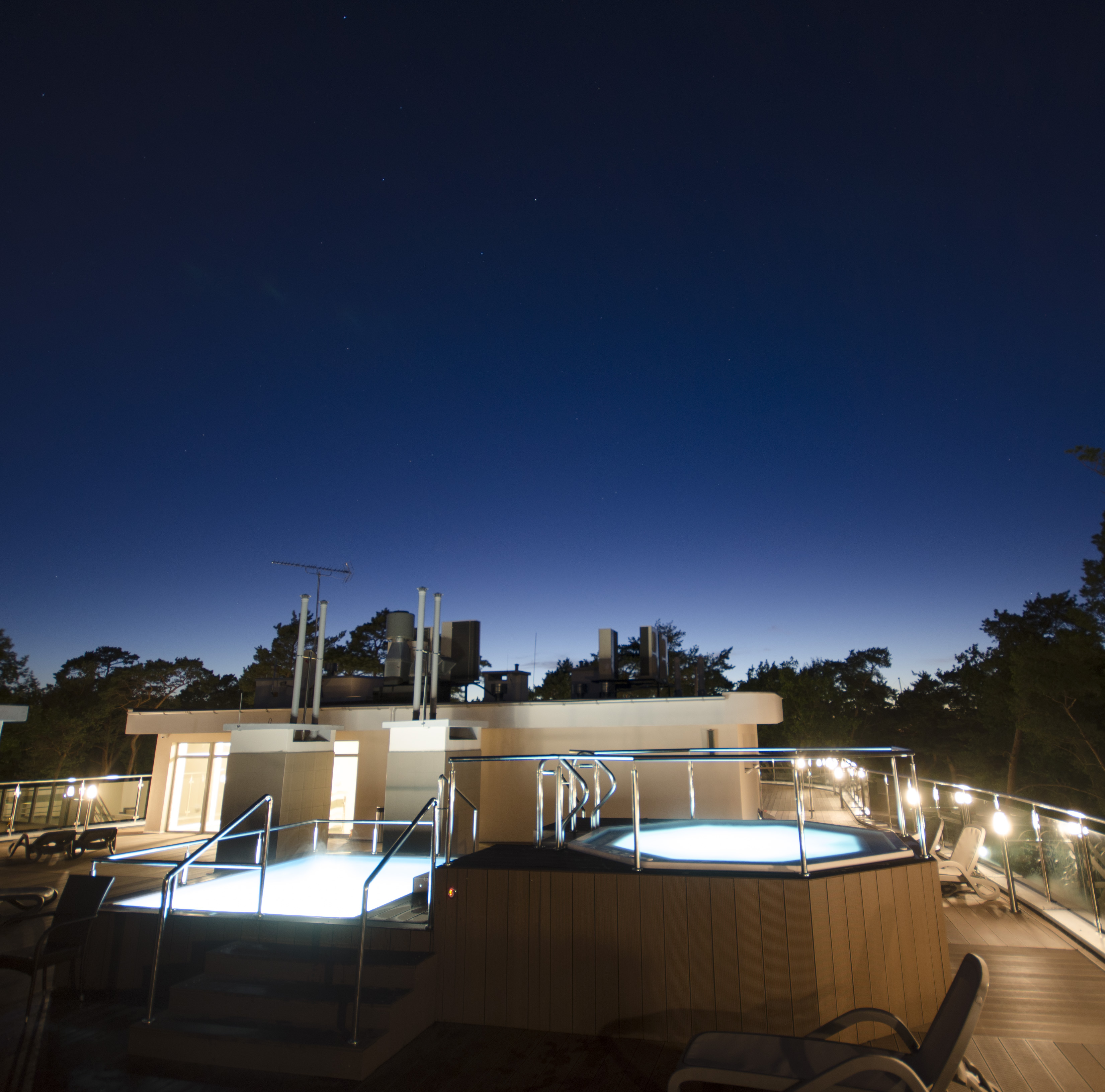 - leżaki i jacuzzi zewnętrzne na dachu hotelu